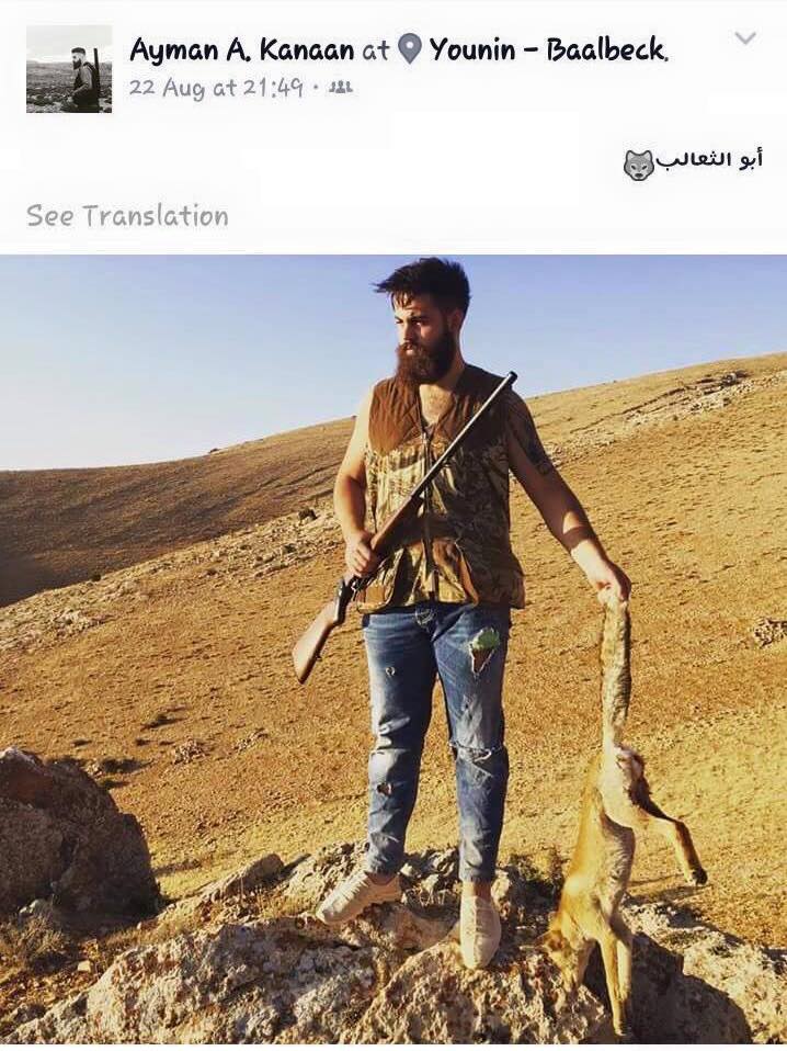 Ayman Kana'an killed and displayed a red fox in Younine on 22/08/3016