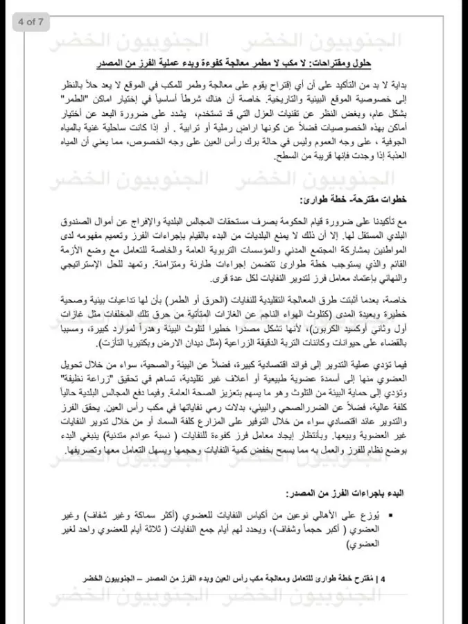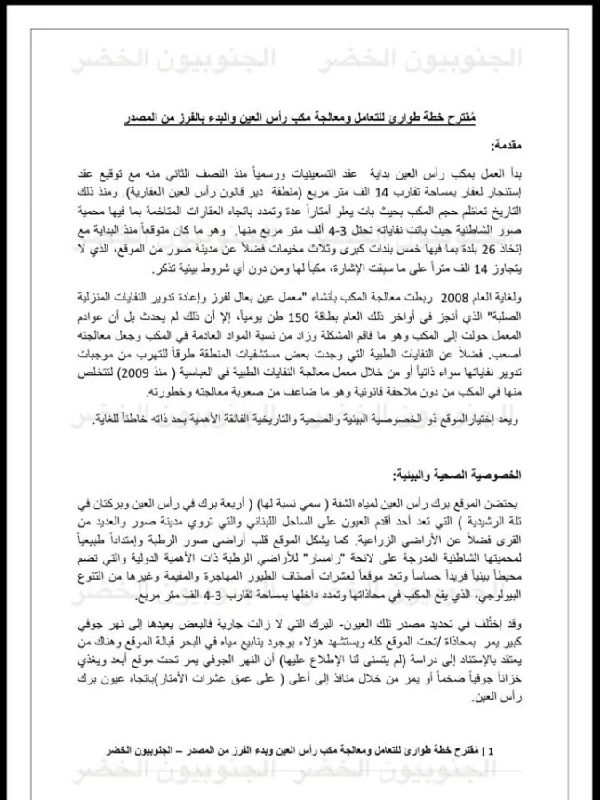 Green Southerners followed up on the issue of the Ras Al-Ain landfill over the past two years. The response the Green Southerners repeatedly received was that work was underway to find a solution the same statement that had been made when the landfill was closed for three months five years ago, yet nothing was done, and we have once again found ourselves facing the same situation.